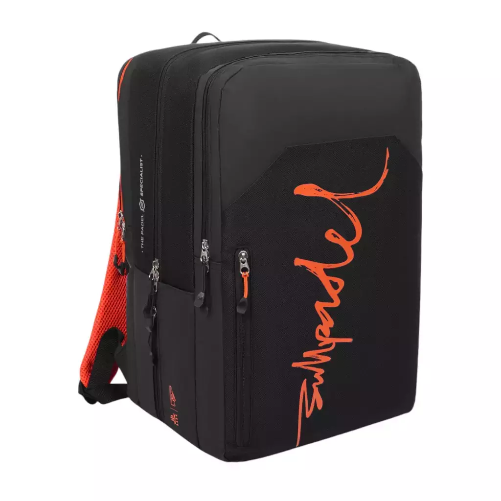 • Gran compartimento central con cremallera bidireccional y ventilación para una ventilación óptima, perfecto para los cambios post-partido y otras 2 palas, equipado con 5 bolsillos internos, dos de ellos de malla y uno con cierre de velcro, para organizar los mejores accesorios